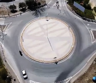 A dita rotunda foi a obras e delas surgiu uma chamada calçada portuguesa e no centro está implantando um objecto cilíndrico de notória altura.